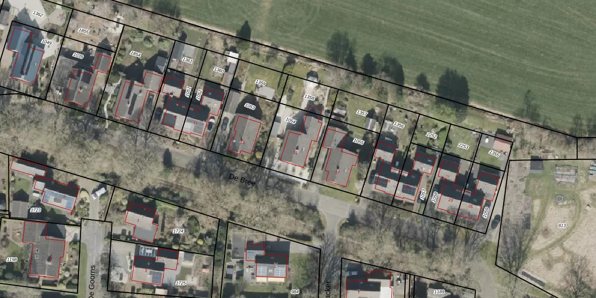 Het perceel waarop De Bree 15 staat heeft een oppervlakte van 390 m². Dit is een groot perceel. De perceeloppervlakte wordt geregistreerd door het Kadaster. Gedetailleerde informatie over de maten van dit perceel kunt u vinden in het rapport Kadastrale kaart met maatvoering van De Bree 15.