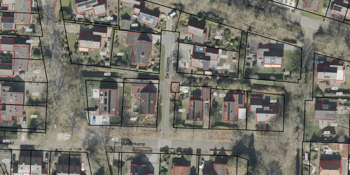 Het perceel waarop De Goorns 3-t staat heeft een oppervlakte van 27 m². Dit is een klein perceel. De perceeloppervlakte wordt geregistreerd door het Kadaster. Gedetailleerde informatie over de maten van dit perceel kunt u vinden in het rapport Kadastrale kaart met maatvoering van De Goorns 3-t.