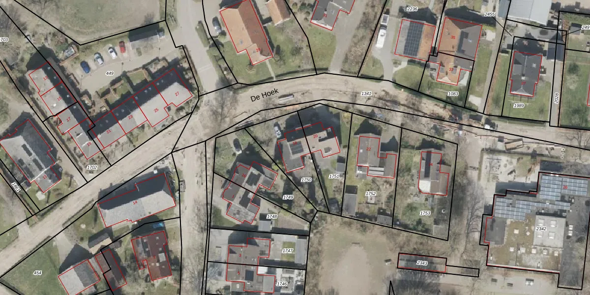 De Hoek 18 is gelegen op kadastraal perceel VDR00H1750. Deze kadastrale aanduiding is uniek en wordt gebruikt door het Kadaster om eigendomsrechten en andere zakelijke rechten vast te leggen. Het perceel maakt onderdeel uit van de kadastrale gemeente Vledder.