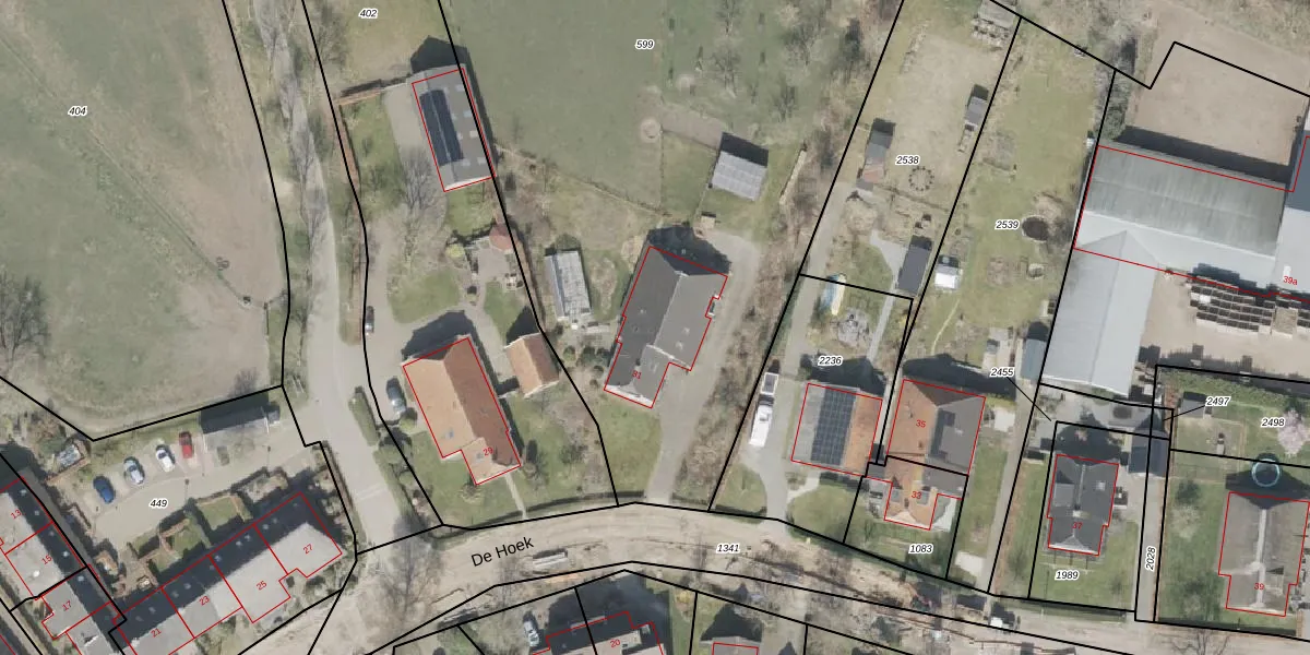 De Hoek 31 is gelegen op kadastraal perceel VDR00H599. Deze kadastrale aanduiding is uniek en wordt gebruikt door het Kadaster om eigendomsrechten en andere zakelijke rechten vast te leggen. Het perceel maakt onderdeel uit van de kadastrale gemeente Vledder.