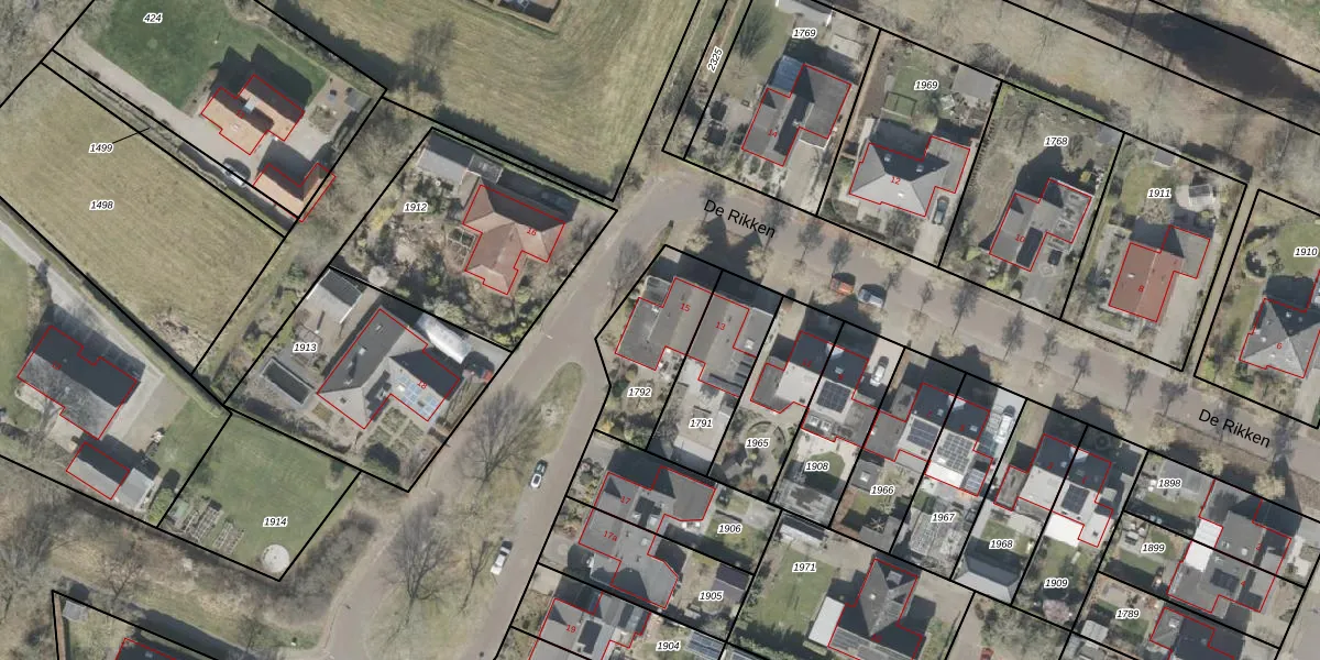 Het perceel waarop De Rikken 15 staat heeft een oppervlakte van 324 m². Dit is een groot perceel. De perceeloppervlakte wordt geregistreerd door het Kadaster. Gedetailleerde informatie over de maten van dit perceel kunt u vinden in het rapport Kadastrale kaart met maatvoering van De Rikken 15.