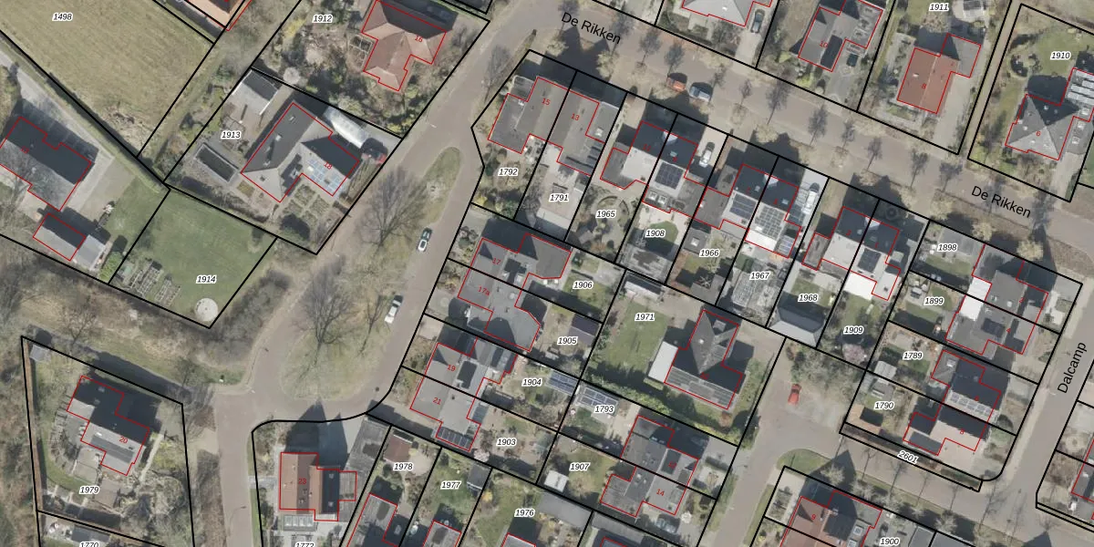 Het perceel waarop De Rikken 17 staat heeft een oppervlakte van 344 m². Dit is een groot perceel. De perceeloppervlakte wordt geregistreerd door het Kadaster. Gedetailleerde informatie over de maten van dit perceel kunt u vinden in het rapport Kadastrale kaart met maatvoering van De Rikken 17.