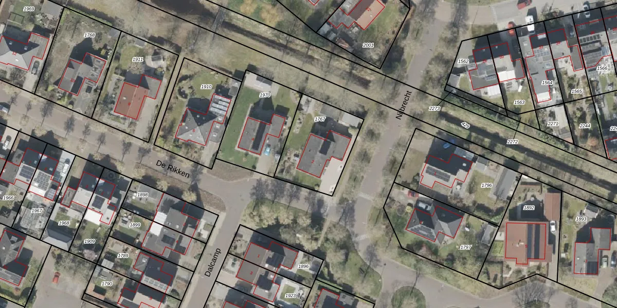 Het perceel waarop De Rikken 2 staat heeft een oppervlakte van 580 m². Dit is een groot perceel. De perceeloppervlakte wordt geregistreerd door het Kadaster. Gedetailleerde informatie over de maten van dit perceel kunt u vinden in het rapport Kadastrale kaart met maatvoering van De Rikken 2.