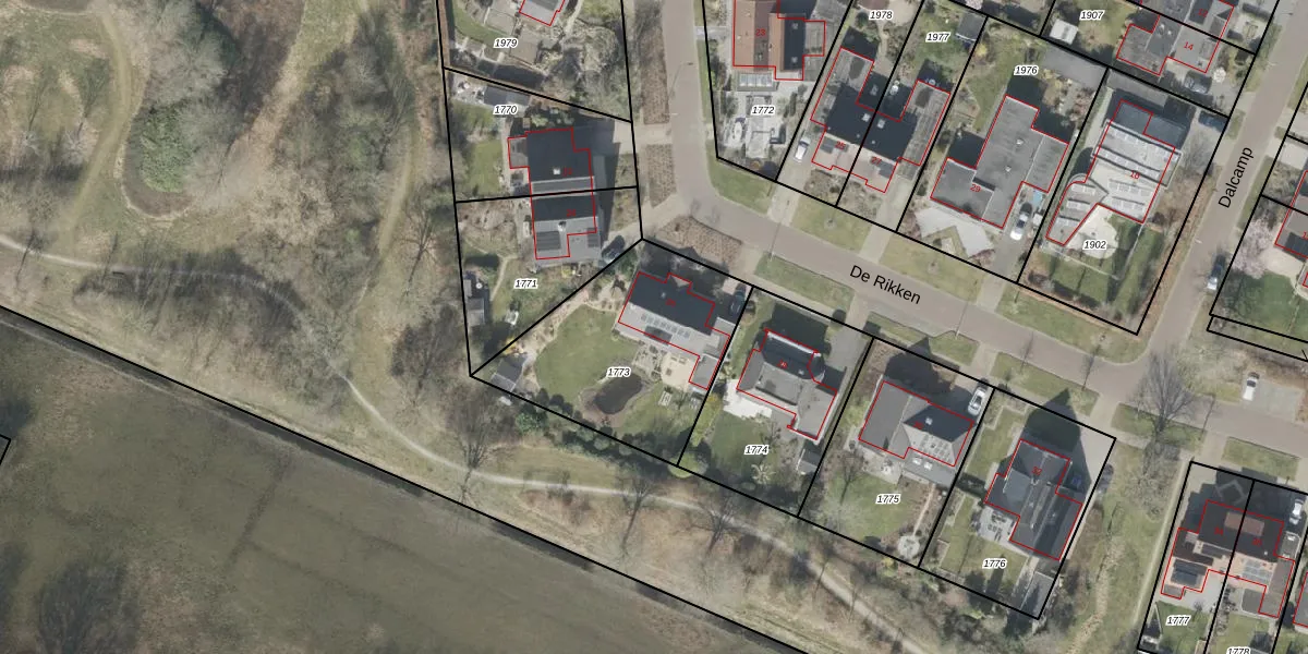Het perceel waarop De Rikken 26 staat heeft een oppervlakte van 791 m². Dit is een groot perceel. De perceeloppervlakte wordt geregistreerd door het Kadaster. Gedetailleerde informatie over de maten van dit perceel kunt u vinden in het rapport Kadastrale kaart met maatvoering van De Rikken 26.
