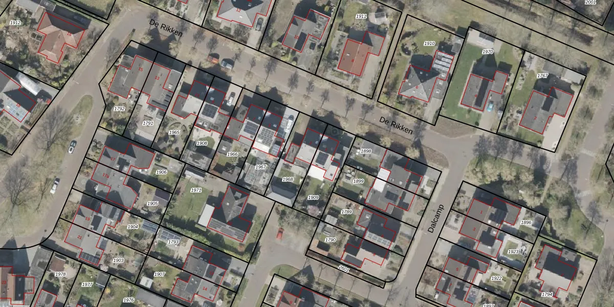 Gebruik de zoekbalk of klik op een perceel voor informatie over de adressen binnen dit perceel.