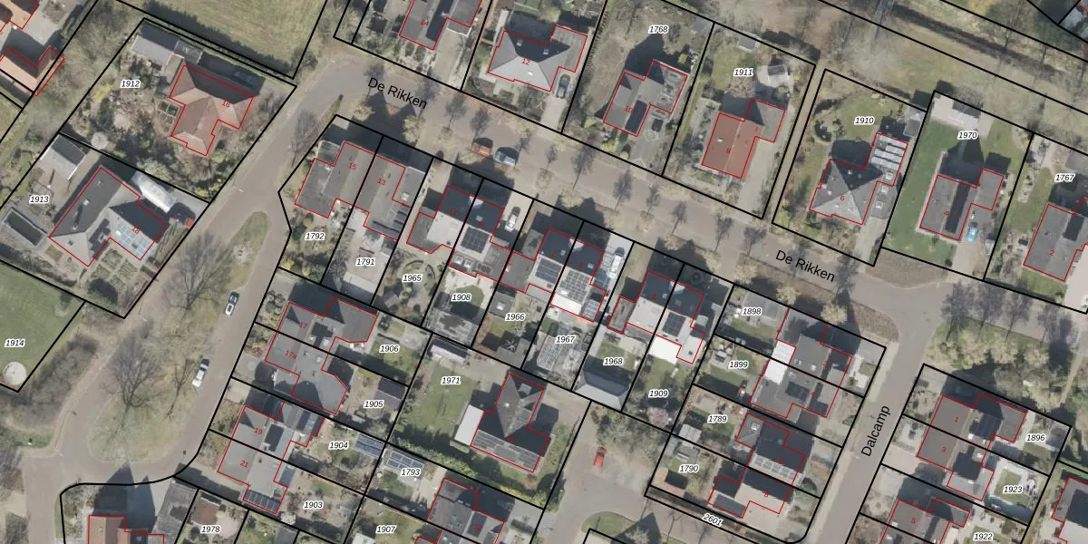 Het perceel waarop De Rikken 7 staat heeft een oppervlakte van 300 m². Dit is een groot perceel. De perceeloppervlakte wordt geregistreerd door het Kadaster. Gedetailleerde informatie over de maten van dit perceel kunt u vinden in het rapport Kadastrale kaart met maatvoering van De Rikken 7.