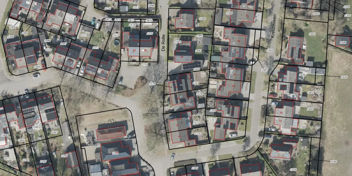 De Rolle 43 is gelegen op kadastraal perceel VDR00H1579. Deze kadastrale aanduiding is uniek en wordt gebruikt door het Kadaster om eigendomsrechten en andere zakelijke rechten vast te leggen. Het perceel maakt onderdeel uit van de kadastrale gemeente Vledder.