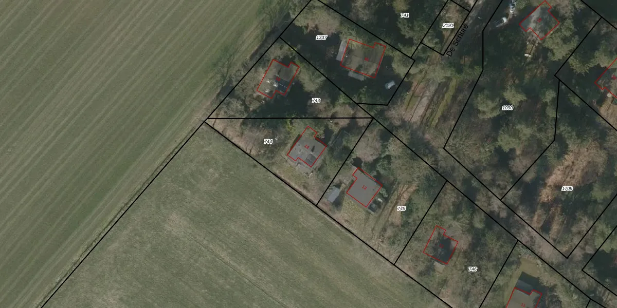 Het perceel waarop De Schure 14 staat heeft een oppervlakte van 805 m². Dit is een groot perceel. De perceeloppervlakte wordt geregistreerd door het Kadaster. Gedetailleerde informatie over de maten van dit perceel kunt u vinden in het rapport Kadastrale kaart met maatvoering van De Schure 14.