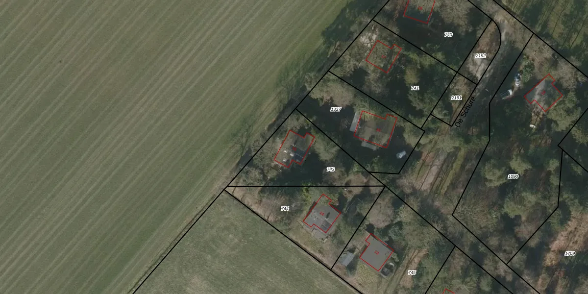 De Schure 15 is gelegen op kadastraal perceel VDR00H743. Deze kadastrale aanduiding is uniek en wordt gebruikt door het Kadaster om eigendomsrechten en andere zakelijke rechten vast te leggen. Het perceel maakt onderdeel uit van de kadastrale gemeente Vledder.