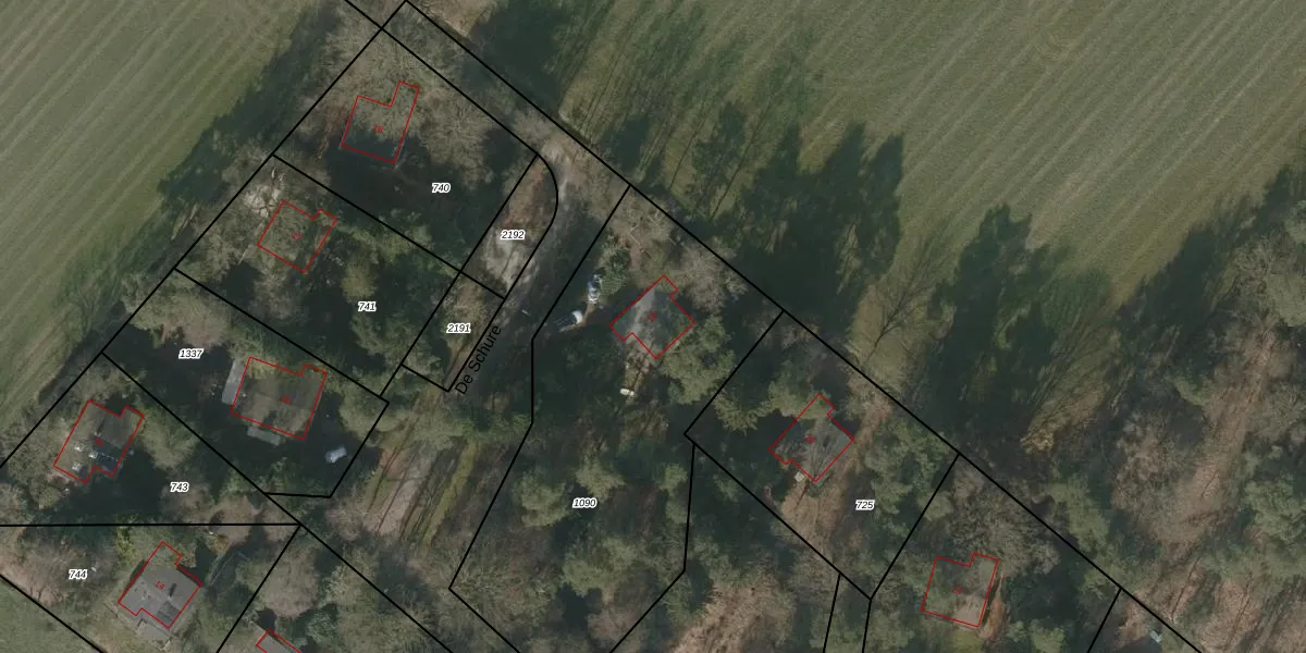 De Schure 19 is gelegen op kadastraal perceel VDR00H1090. Deze kadastrale aanduiding is uniek en wordt gebruikt door het Kadaster om eigendomsrechten en andere zakelijke rechten vast te leggen. Het perceel maakt onderdeel uit van de kadastrale gemeente Vledder.