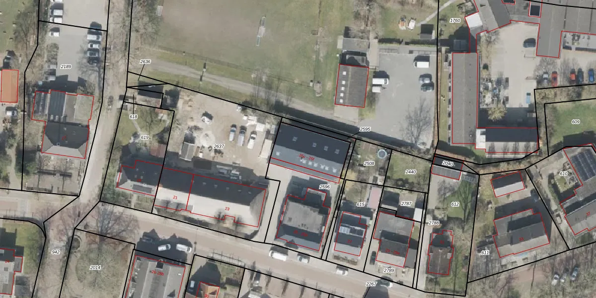 Het adres ligt op het perceel VDR00-H-2596, dat zich in de kadastrale gemeente Vledder bevindt. Het perceel is kleiner dan gemiddeld in Vledder. Het perceel is 902 m² groot, terwijl het gemiddelde ligt op 1,2 ha. Het kleinste perceel in de kadastrale gemeente is 0 m² groot. De grootste perceeloppervlakte is 1,20 km². Op het perceel liggen in totaal 7 adressen. De laatste wijziging in het de Basisregistratie Kadaster (BRK) was op 22-01-2019.