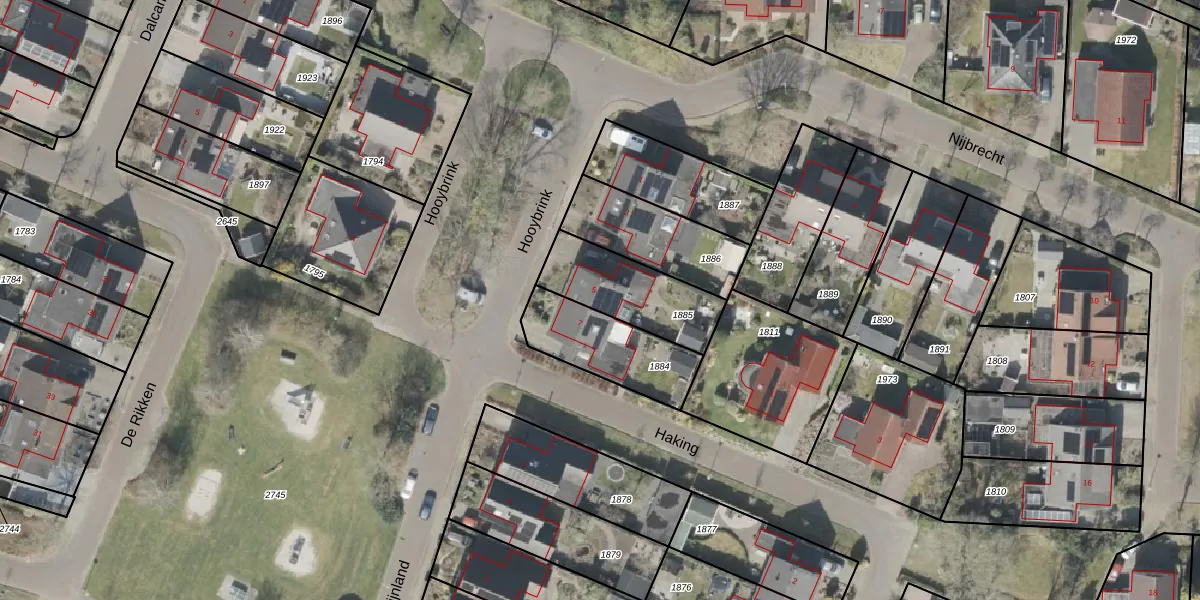 Het perceel waarop Hooybrink 5 staat heeft een oppervlakte van 300 m². Dit is een groot perceel. De perceeloppervlakte wordt geregistreerd door het Kadaster. Gedetailleerde informatie over de maten van dit perceel kunt u vinden in het rapport Kadastrale kaart met maatvoering van Hooybrink 5.
