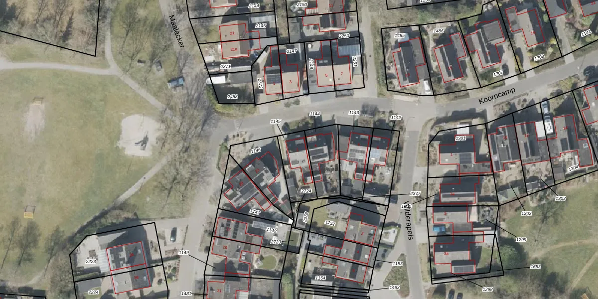 Het perceel waarop Koorncamp 2 staat heeft een oppervlakte van 216 m². Dit is een middelgroot perceel. De perceeloppervlakte wordt geregistreerd door het Kadaster. Gedetailleerde informatie over de maten van dit perceel kunt u vinden in het rapport Kadastrale kaart met maatvoering van Koorncamp 2.
