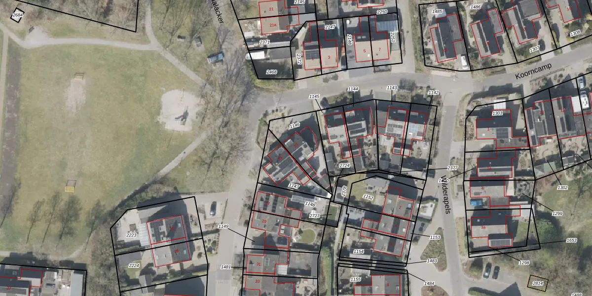 Gebruik de zoekbalk of klik op een perceel voor informatie over de adressen binnen dit perceel.