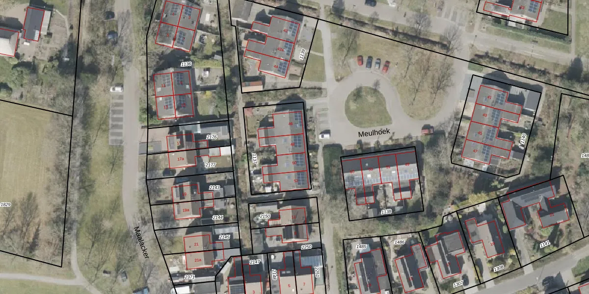 Het perceel waarop Meulhoek 48 staat heeft een oppervlakte van 608 m². Dit is een groot perceel. De perceeloppervlakte wordt geregistreerd door het Kadaster. Gedetailleerde informatie over de maten van dit perceel kunt u vinden in het rapport Kadastrale kaart met maatvoering van Meulhoek 48.