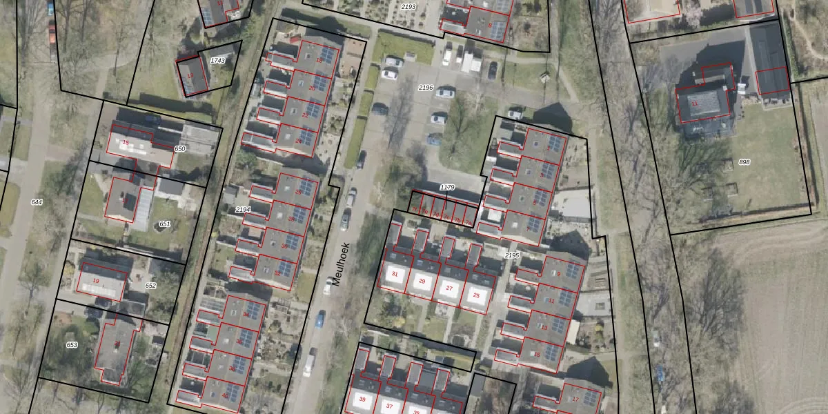 Het perceel waarop Meulhoek 7-f staat heeft een oppervlakte van 86 m². Dit is een klein perceel. De perceeloppervlakte wordt geregistreerd door het Kadaster. Gedetailleerde informatie over de maten van dit perceel kunt u vinden in het rapport Kadastrale kaart met maatvoering van Meulhoek 7-f.