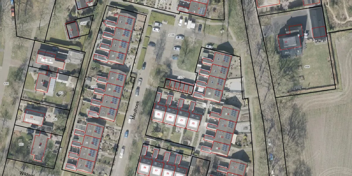 Het perceel waarop Meulhoek 7-d staat heeft een oppervlakte van 86 m². Dit is een klein perceel. De perceeloppervlakte wordt geregistreerd door het Kadaster. Gedetailleerde informatie over de maten van dit perceel kunt u vinden in het rapport Kadastrale kaart met maatvoering van Meulhoek 7-d.