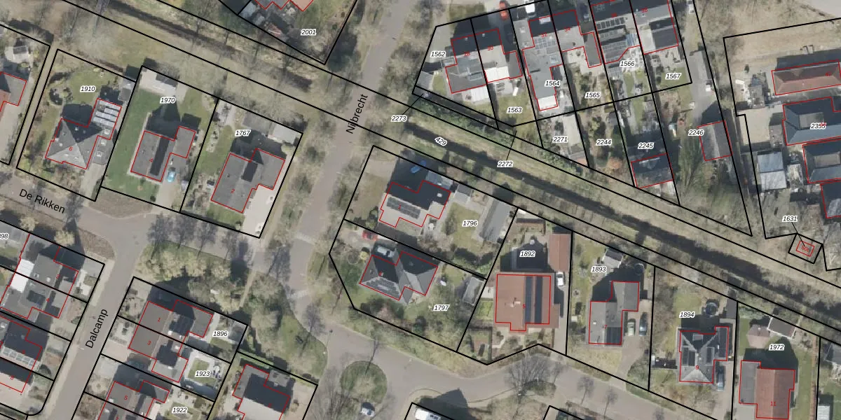 Het perceel waarop Nijbrecht 1 staat heeft een oppervlakte van 701 m². Dit is een groot perceel. De perceeloppervlakte wordt geregistreerd door het Kadaster. Gedetailleerde informatie over de maten van dit perceel kunt u vinden in het rapport Kadastrale kaart met maatvoering van Nijbrecht 1.