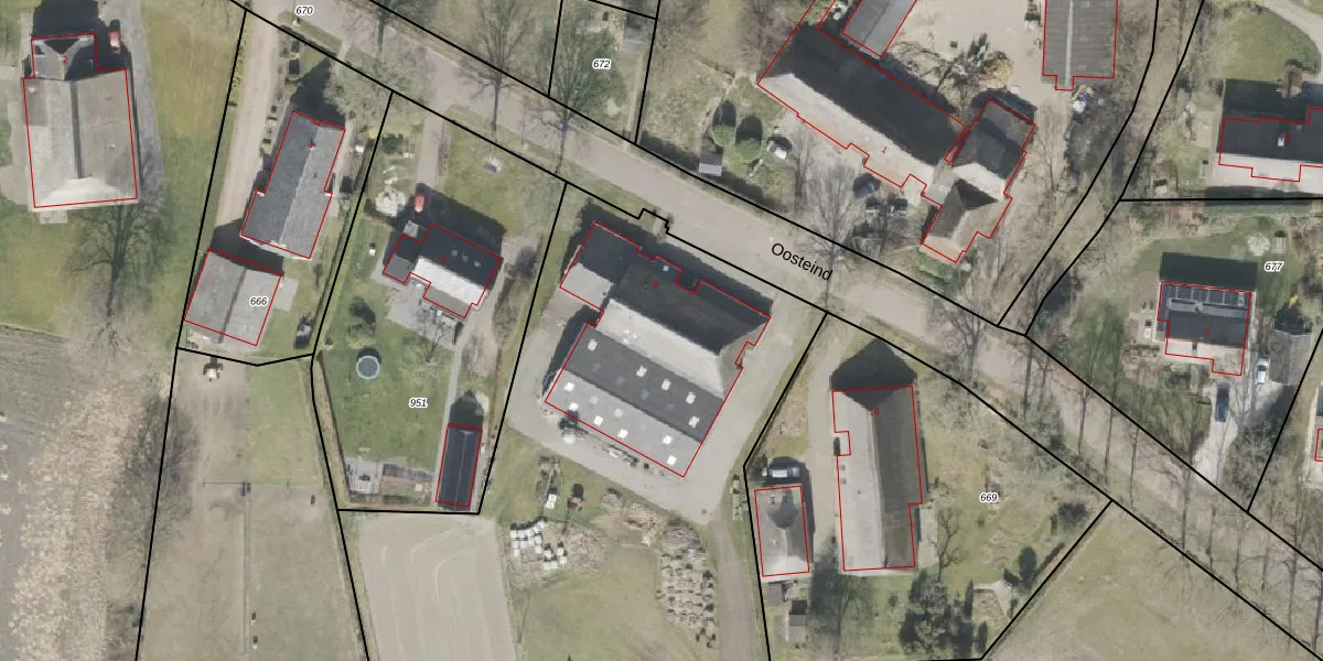 Oosteind 8 is gelegen op kadastraal perceel VDR00H952. Deze kadastrale aanduiding is uniek en wordt gebruikt door het Kadaster om eigendomsrechten en andere zakelijke rechten vast te leggen. Het perceel maakt onderdeel uit van de kadastrale gemeente Vledder.