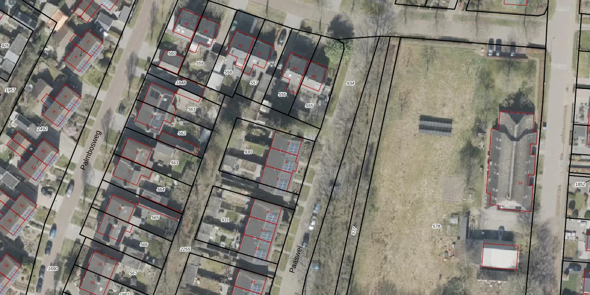 Het perceel waarop Paaswei 2 staat heeft een oppervlakte van 541 m². Dit is een groot perceel. De perceeloppervlakte wordt geregistreerd door het Kadaster. Gedetailleerde informatie over de maten van dit perceel kunt u vinden in het rapport Kadastrale kaart met maatvoering van Paaswei 2.