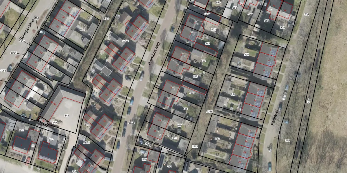 Gebruik de zoekbalk of klik op een perceel voor informatie over de adressen binnen dit perceel.