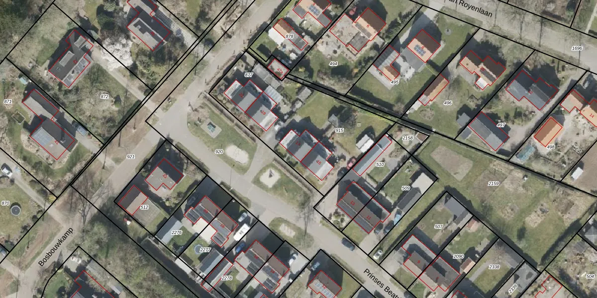 Het perceel waarop Prinses Beatrixstraat 17 staat heeft een oppervlakte van 1338 m². Dit is een zeer groot perceel. De perceeloppervlakte wordt geregistreerd door het Kadaster. Gedetailleerde informatie over de maten van dit perceel kunt u vinden in het rapport Kadastrale kaart met maatvoering van Prinses Beatrixstraat 17.
