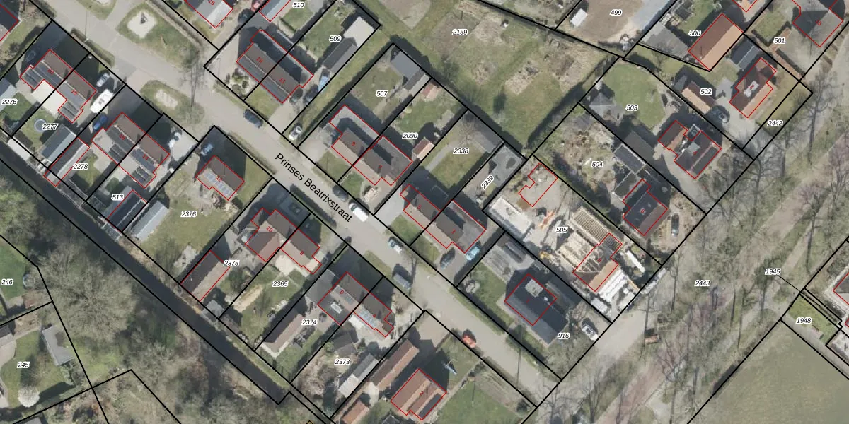 Het perceel waarop Prinses Beatrixstraat 5 staat heeft een oppervlakte van 383 m². Dit is een groot perceel. De perceeloppervlakte wordt geregistreerd door het Kadaster. Gedetailleerde informatie over de maten van dit perceel kunt u vinden in het rapport Kadastrale kaart met maatvoering van Prinses Beatrixstraat 5.