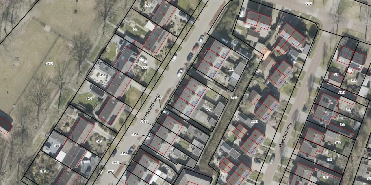 Het perceel waarop Scheperskamp 18 staat heeft een oppervlakte van 530 m². Dit is een groot perceel. De perceeloppervlakte wordt geregistreerd door het Kadaster. Gedetailleerde informatie over de maten van dit perceel kunt u vinden in het rapport Kadastrale kaart met maatvoering van Scheperskamp 18.