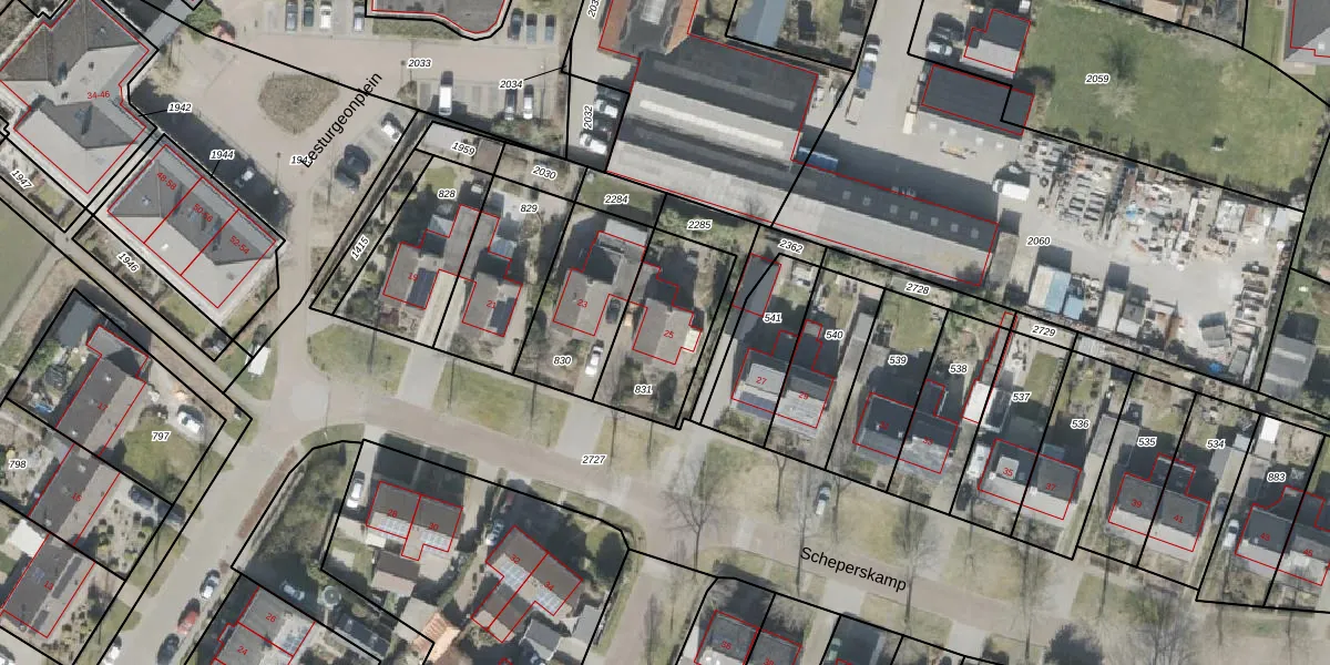 Gebruik de zoekbalk of klik op een perceel voor informatie over de adressen binnen dit perceel.