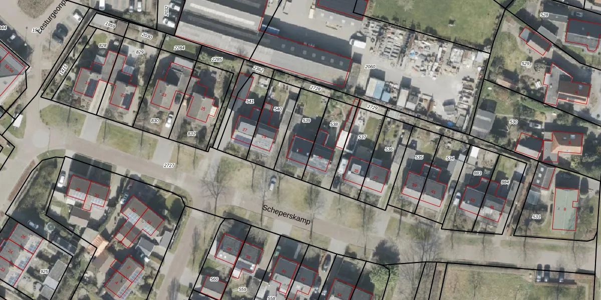 Gebruik de zoekbalk of klik op een perceel voor informatie over de adressen binnen dit perceel.