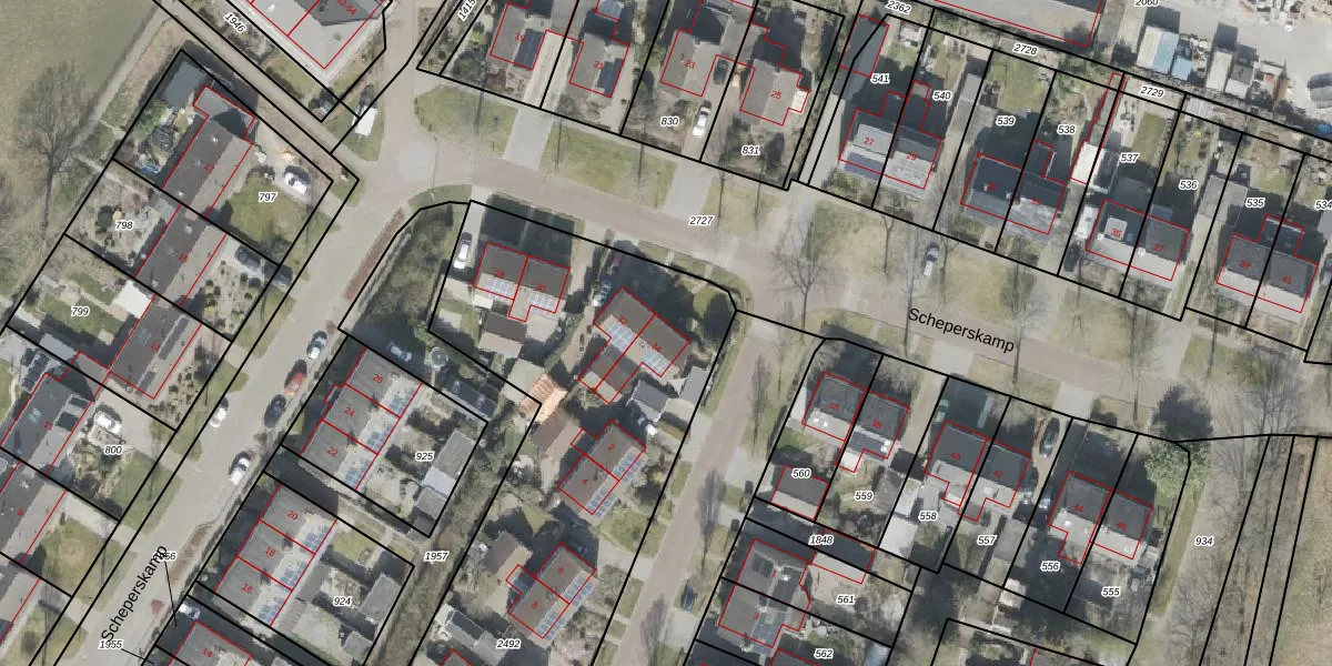 Het perceel waarop Scheperskamp 34 staat heeft een oppervlakte van 3330 m². Dit is een zeer groot perceel. De perceeloppervlakte wordt geregistreerd door het Kadaster. Gedetailleerde informatie over de maten van dit perceel kunt u vinden in het rapport Kadastrale kaart met maatvoering van Scheperskamp 34.