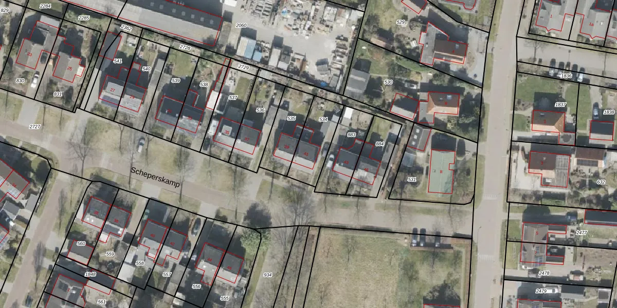 Het perceel waarop Scheperskamp 41 staat heeft een oppervlakte van 283 m². Dit is een middelgroot perceel. De perceeloppervlakte wordt geregistreerd door het Kadaster. Gedetailleerde informatie over de maten van dit perceel kunt u vinden in het rapport Kadastrale kaart met maatvoering van Scheperskamp 41.