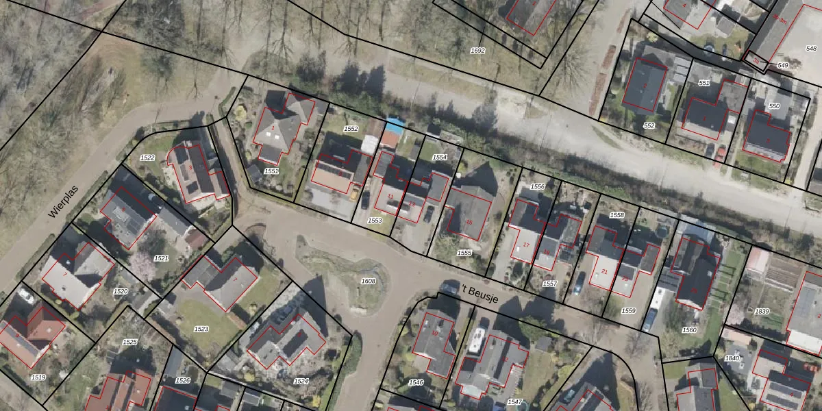 't Beusje 13 is gelegen op kadastraal perceel VDR00H1554. Deze kadastrale aanduiding is uniek en wordt gebruikt door het Kadaster om eigendomsrechten en andere zakelijke rechten vast te leggen. Het perceel maakt onderdeel uit van de kadastrale gemeente Vledder.