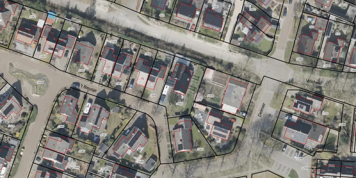 Het perceel waarop 't Beusje 25 staat heeft een oppervlakte van 585 m². Dit is een groot perceel. De perceeloppervlakte wordt geregistreerd door het Kadaster. Gedetailleerde informatie over de maten van dit perceel kunt u vinden in het rapport Kadastrale kaart met maatvoering van 't Beusje 25.