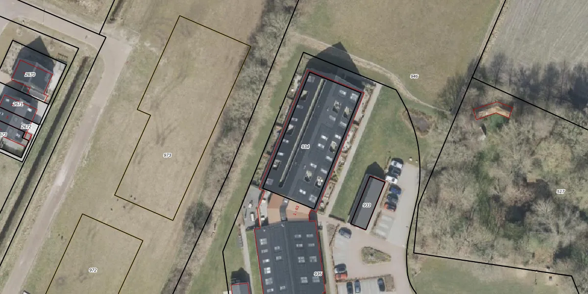 Het adres is gelegen op perceel 934 in de sectie G en de kadastrale gemeente Vledder. De kadastrale aanduiding is aldus VDR00-G-934. Het perceel is kleiner dan gemiddeld in Vledder. Het perceel is 805 m² groot, terwijl het gemiddelde ligt op 1,2 ha. Het grootste perceel in de kadastrale gemeente is 1,20 km². Het kleinste perceel heeft een oppervlakte van 0 m². Er zijn 16 adressen aanwezig op het perceel. De huidige grenzen van het perceel zijn digitaal in de Basisregistratie Kadaster (BRK) geregistreerd op 25-09-2019.