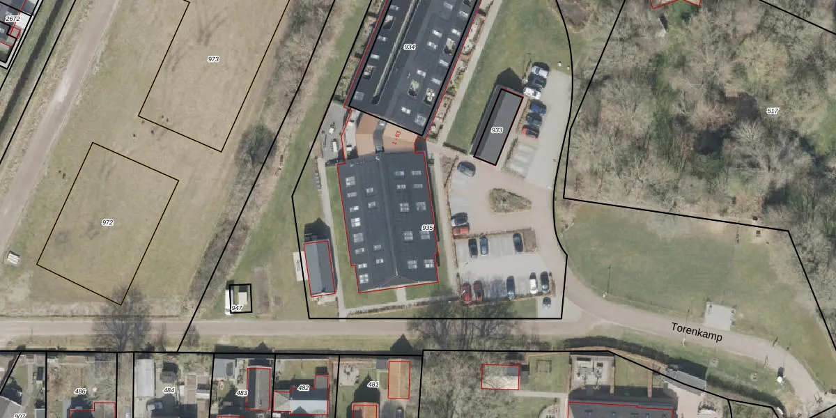 Torenkamp 35 is gelegen op kadastraal perceel VDR00G935. Deze kadastrale aanduiding is uniek en wordt gebruikt door het Kadaster om eigendomsrechten en andere zakelijke rechten vast te leggen. Het perceel maakt onderdeel uit van de kadastrale gemeente Vledder.