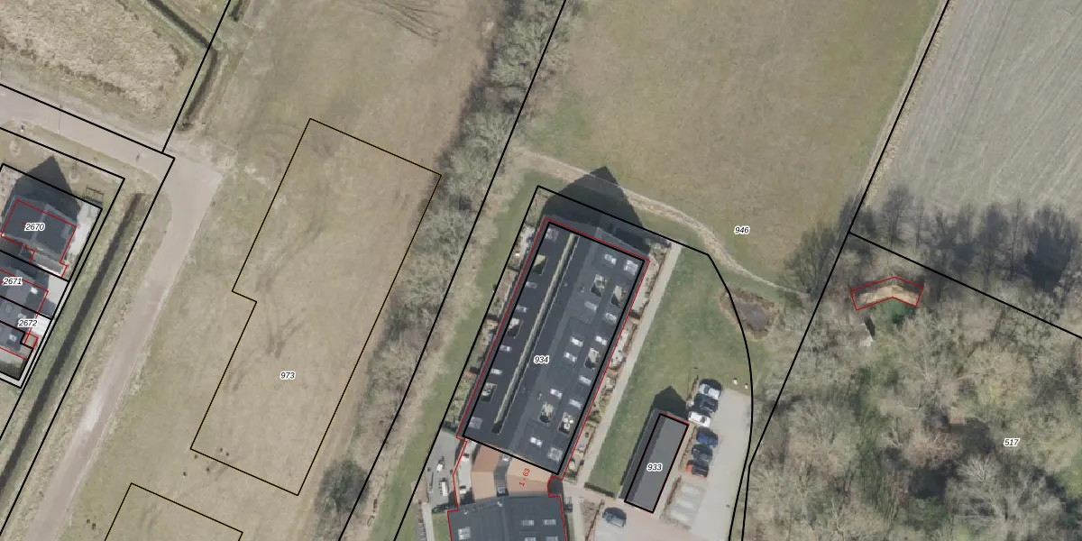 Het adres is gelegen op perceel 934 in de sectie G en de kadastrale gemeente Vledder. De kadastrale aanduiding is aldus VDR00-G-934. Het perceel is kleiner dan gemiddeld in Vledder. Het perceel is 805 m² groot, terwijl het gemiddelde ligt op 1,2 ha. Het grootste perceel in de kadastrale gemeente is 1,20 km². Het kleinste perceel heeft een oppervlakte van 0 m². Op het perceel zijn 16 adressen aanwezig. In de Basisregistratie Kadaster (BRK) werden de grenzen van het perceel geregistreerd op 25-09-2019.