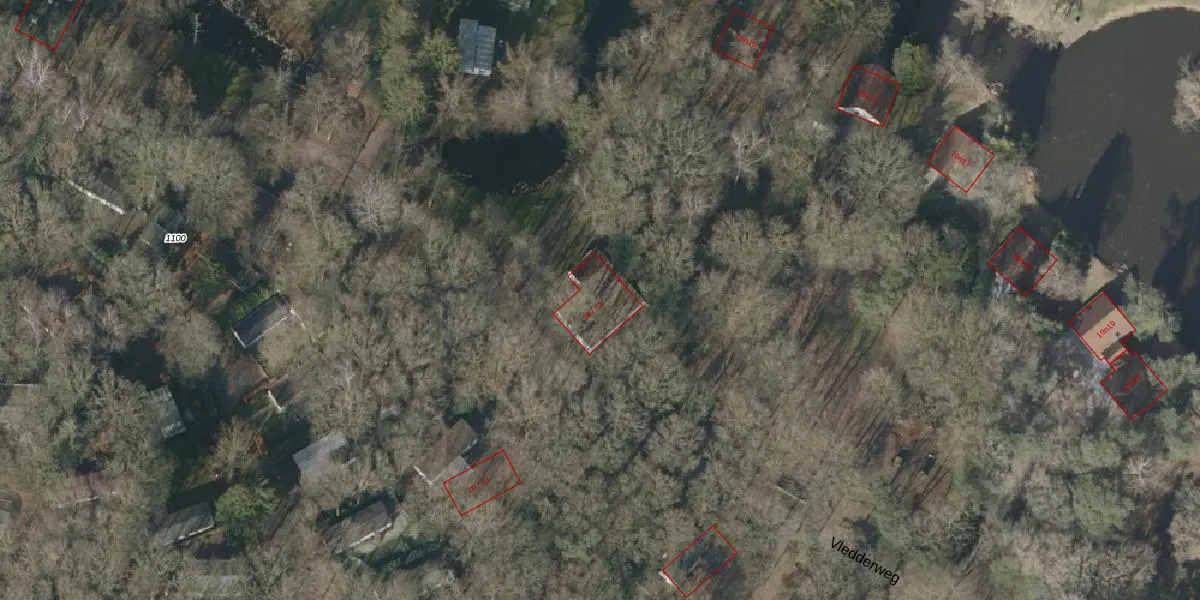 Het perceel waarop Vledderweg 19-n3 staat heeft een oppervlakte van 15,0 ha. Dit is een zeer groot perceel. De perceeloppervlakte wordt geregistreerd door het Kadaster. Gedetailleerde informatie over de maten van dit perceel kunt u vinden in het rapport Kadastrale kaart met maatvoering van Vledderweg 19-n3.