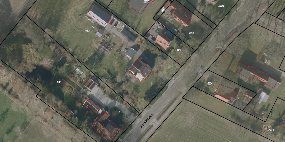 Vledderweg 40 is gelegen op kadastraal perceel VDR00H1395. Deze kadastrale aanduiding is uniek en wordt gebruikt door het Kadaster om eigendomsrechten en andere zakelijke rechten vast te leggen. Het perceel maakt onderdeel uit van de kadastrale gemeente Vledder.