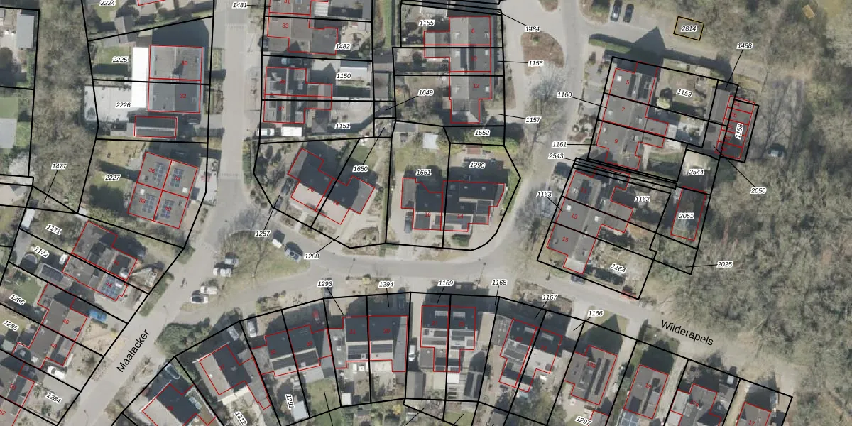 Het perceel waarop Wilderapels 16 staat heeft een oppervlakte van 386 m². Dit is een groot perceel. De perceeloppervlakte wordt geregistreerd door het Kadaster. Gedetailleerde informatie over de maten van dit perceel kunt u vinden in het rapport Kadastrale kaart met maatvoering van Wilderapels 16.