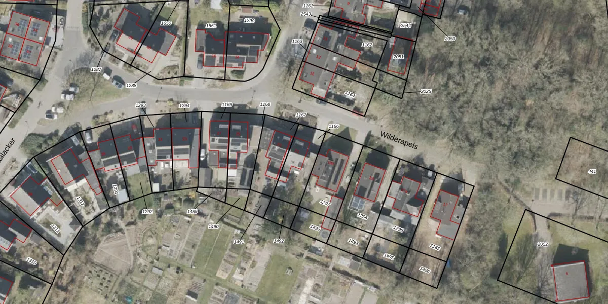 Wilderapels 21 is gelegen op kadastraal perceel VDR00H1166. Deze kadastrale aanduiding is uniek en wordt gebruikt door het Kadaster om eigendomsrechten en andere zakelijke rechten vast te leggen. Het perceel maakt onderdeel uit van de kadastrale gemeente Vledder.