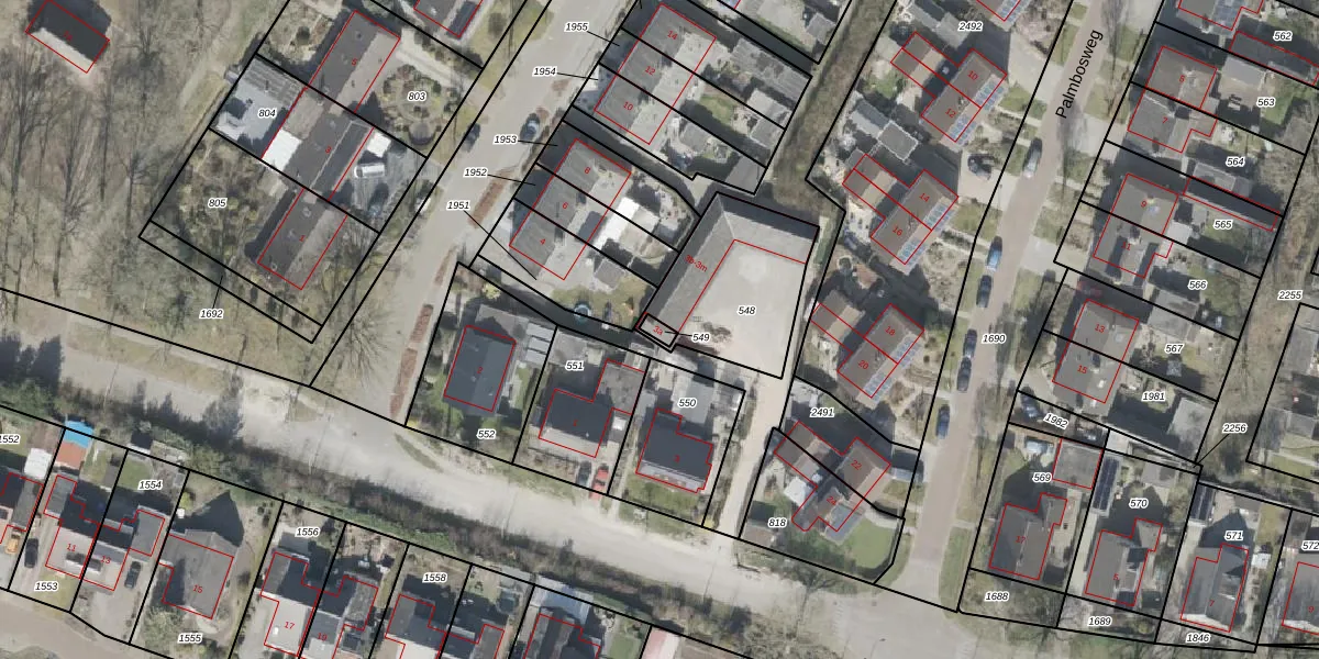 Het adres is gelegen op perceel 549 in de sectie H en de kadastrale gemeente Vledder. De kadastrale aanduiding is aldus VDR00-H-549. Het perceel is 18 m² groot. Dat is kleiner dan de gemiddelde perceeloppervlakte in Vledder, dat op 1,2 ha ligt. Het grootste perceel in de kadastrale gemeente is 1,20 km². Het kleinste perceel heeft een oppervlakte van 0 m². Op het perceel bevinden zich geen andere adressen. De huidige grenzen van het perceel zijn digitaal in de Basisregistratie Kadaster (BRK) geregistreerd op 27-03-2001.