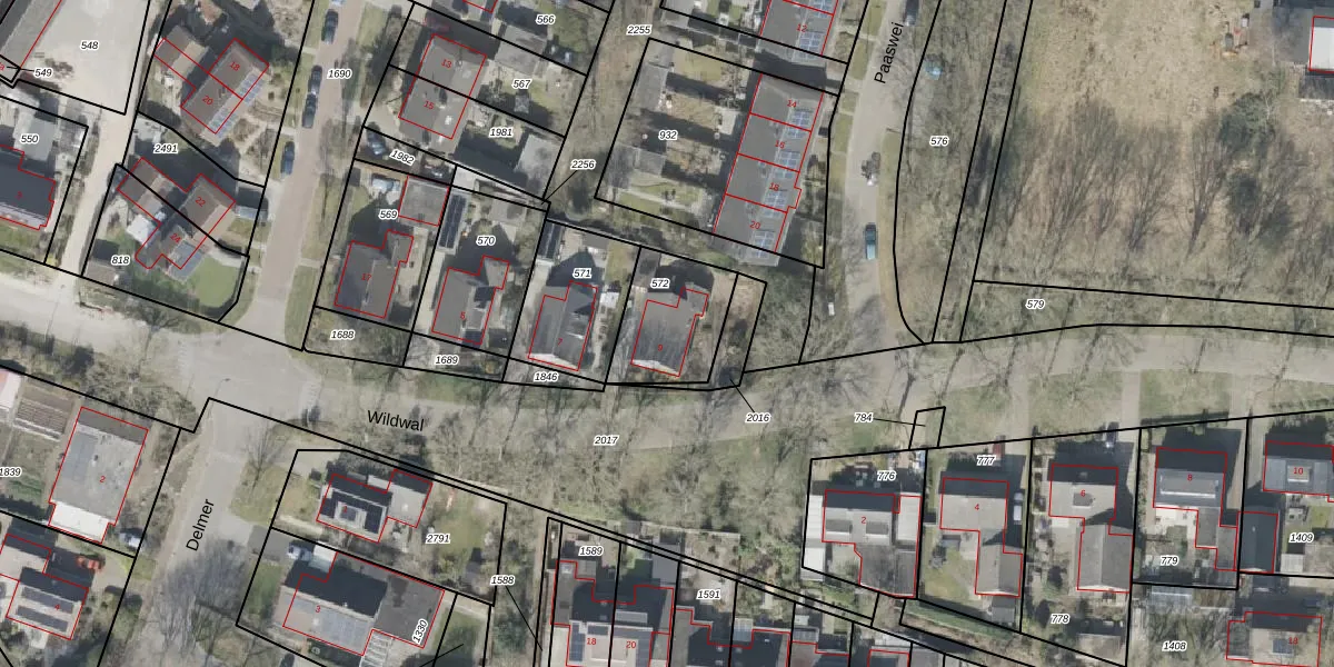 Gebruik de zoekbalk of klik op een perceel voor informatie over de adressen binnen dit perceel.