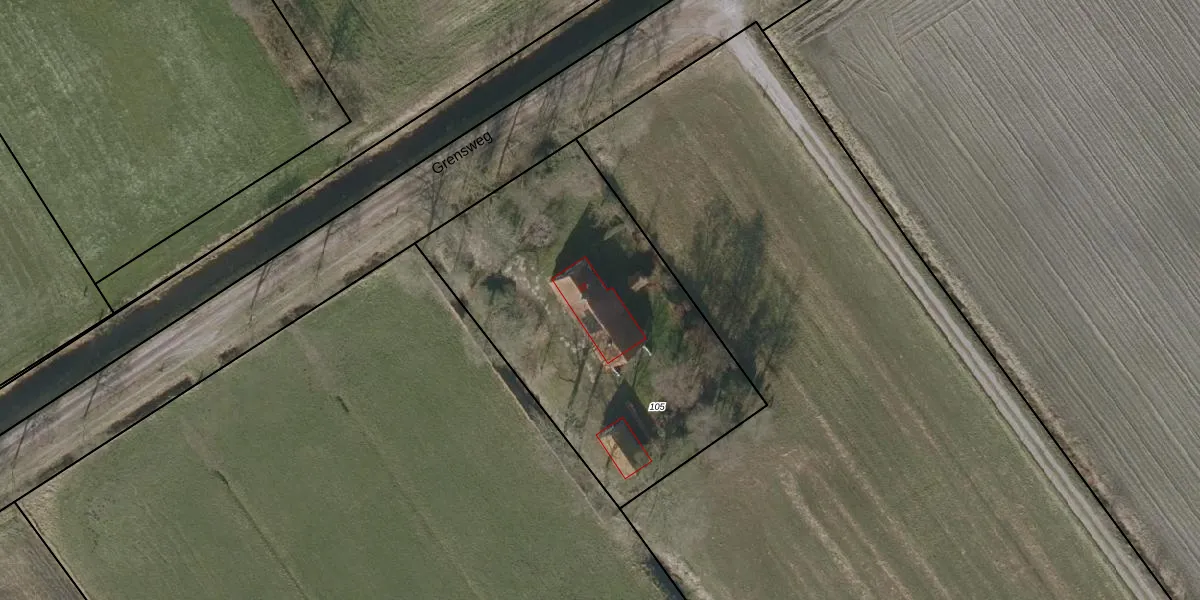 Grensweg 18 is gelegen op kadastraal perceel VDR00H105. Deze kadastrale aanduiding is uniek en wordt gebruikt door het Kadaster om eigendomsrechten en andere zakelijke rechten vast te leggen. Het perceel maakt onderdeel uit van de kadastrale gemeente Vledder.