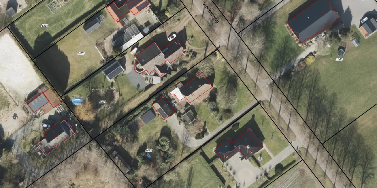 Het perceel waarop Vledderweg 22 staat heeft een oppervlakte van 2960 m². Dit is een zeer groot perceel. De perceeloppervlakte wordt geregistreerd door het Kadaster. Gedetailleerde informatie over de maten van dit perceel kunt u vinden in het rapport Kadastrale kaart met maatvoering van Vledderweg 22.