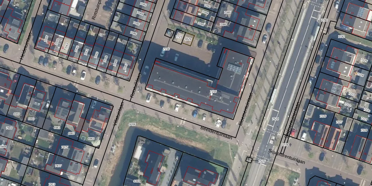 Het perceel waarop Beeldentuinlaan 7-A staat heeft een oppervlakte van 1175 m². Dit is een zeer groot perceel. De perceeloppervlakte wordt geregistreerd door het Kadaster. Gedetailleerde informatie over de maten van dit perceel kunt u vinden in het rapport Kadastrale kaart met maatvoering van Beeldentuinlaan 7-A.