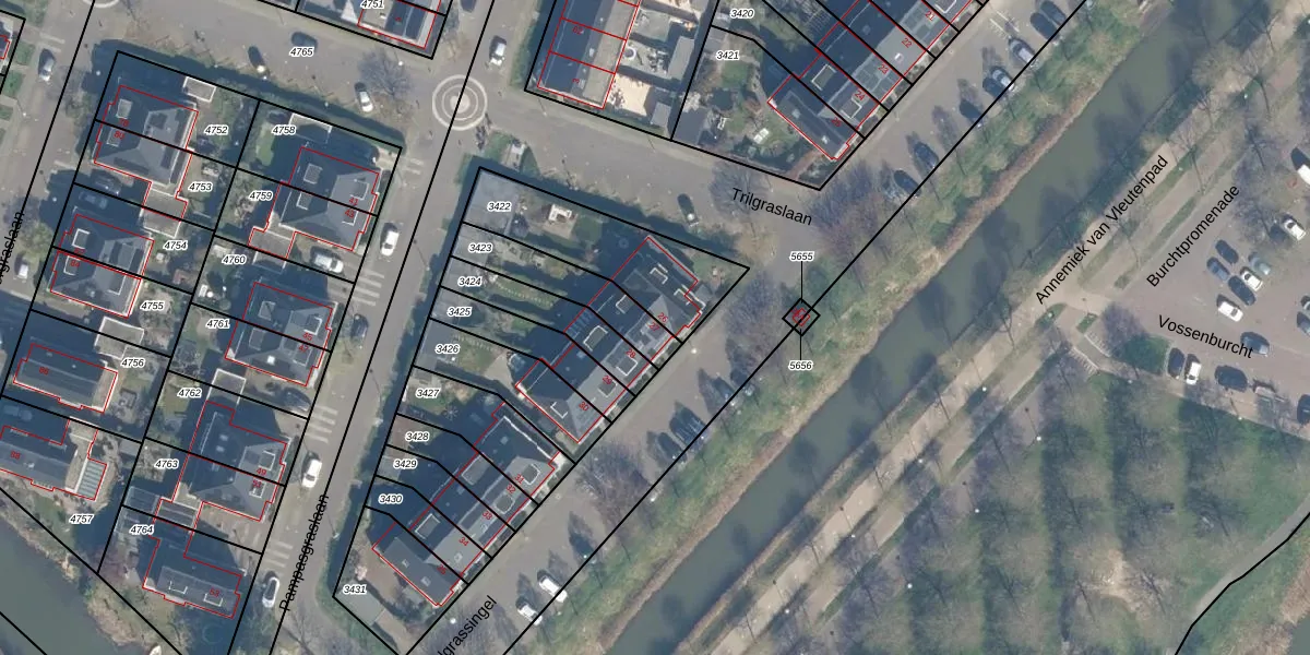 Het perceel waarop het adres ligt is VTN00-E-3423. De afkorting 'VTN00' staat voor kadastrale gemeente Vleuten. Het perceel is 206 m² groot. Dat is kleiner dan de gemiddelde perceeloppervlakte in Vleuten, dat op 1412,07 m² ligt. Het grootste perceel in de kadastrale gemeente is 55,6 ha. Het kleinste perceel heeft een oppervlakte van 0 m². Dit is het enige adres dat aanwezig is op het perceel. In de Basisregistratie Kadaster (BRK) werden de grenzen van het perceel geregistreerd op 20-08-2009.