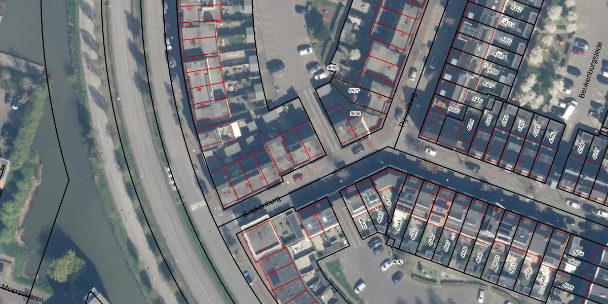 Het adres is gelegen op perceel 9561 in de sectie E en de kadastrale gemeente Vleuten. De kadastrale aanduiding is aldus VTN00-E-9561. De oppervlakte van het perceel is 3803 m². Dat is groter dan gemiddeld in Vleuten, waar de gemiddelde perceeloppervlakte op 1408,24 m² ligt. De grootste perceeloppervlakte in de kadastrale gemeente is 55,6 ha. De kleinste oppervlakte bedraagt 0 m². Op het perceel liggen in totaal 30 adressen. De huidige grenzen van het perceel zijn digitaal in de Basisregistratie Kadaster (BRK) geregistreerd op 24-11-2025.