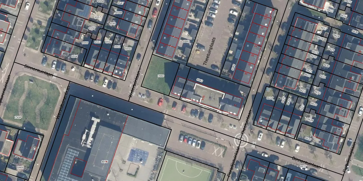 Het perceel waarop Binnentuinlaan 25 staat heeft een oppervlakte van 1015 m². Dit is een zeer groot perceel. De perceeloppervlakte wordt geregistreerd door het Kadaster. Gedetailleerde informatie over de maten van dit perceel kunt u vinden in het rapport Kadastrale kaart met maatvoering van Binnentuinlaan 25.