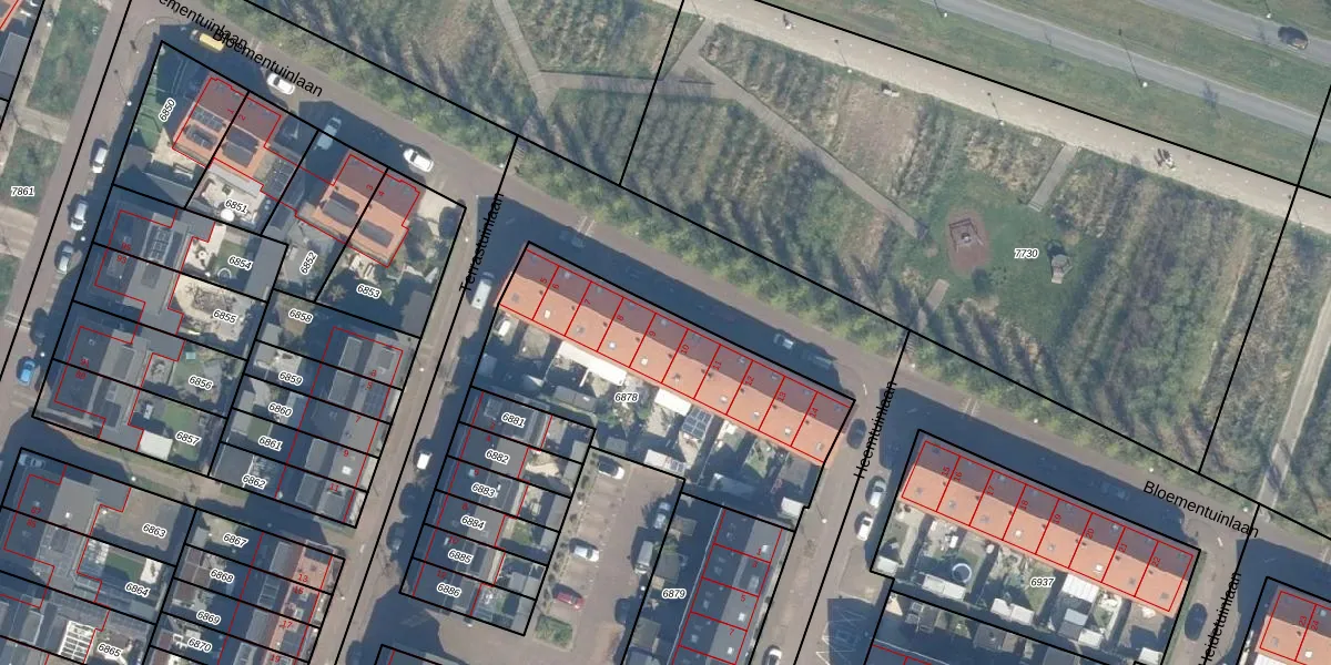 Bloementuinlaan 9 is gelegen op kadastraal perceel VTN00E6878. Deze kadastrale aanduiding is uniek en wordt gebruikt door het Kadaster om eigendomsrechten en andere zakelijke rechten vast te leggen. Het perceel maakt onderdeel uit van de kadastrale gemeente Vleuten.